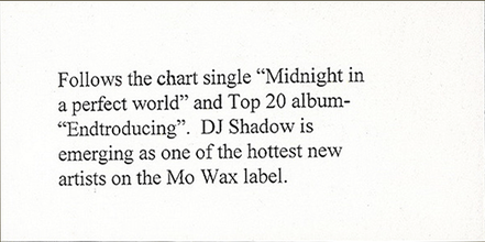 For the first time on 12" as part of the Mo Wax Classics series that was shut down before it could hit the market, yet the records were pressed already.