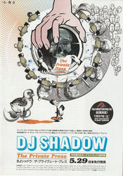 A5 sized four sided flyer advertises the release of The Private Press and the Blackalicious album, Blazing Arrow. It contains a "Correlation Diagram" detailing, how Shadow and Blackalicious are linked to each other and other artists. There is also a small advertisement to Shadows performance at the 2002 Fuji Rock Festival.