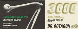 Double sided flyer advertising the release of the instrumental version of the Dr. Octagon album Dr. Octagonecologyst. Shadow performed on Waiting List and says that he may have performed on a few others, although the only one he has confirmed is "Girl Let Me Touch You", on which he played a toy piano.